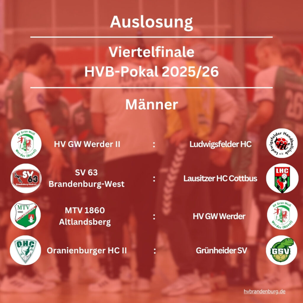 Die Partien für die Viertelfinalspiele der Männer im HVB- und Verbandspokal 2025/26 stehen fest.
