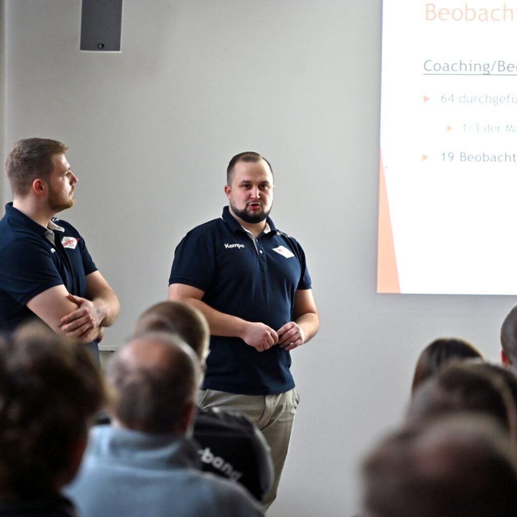 Das dürfte nach wie vor einmalig sein im deutschen Handball, vielleicht sogar im deutschen Ballsport. Am vergangenen Freitagabend waren etwa 100 Teilnehmerinnen und Teilnehmer zu Gast in Potsdam, um sich während der B-Jugend-Bundesligapartie zwischen dem 1. VfL Potsdam und den Füchsen Berlin weiterzubilden.