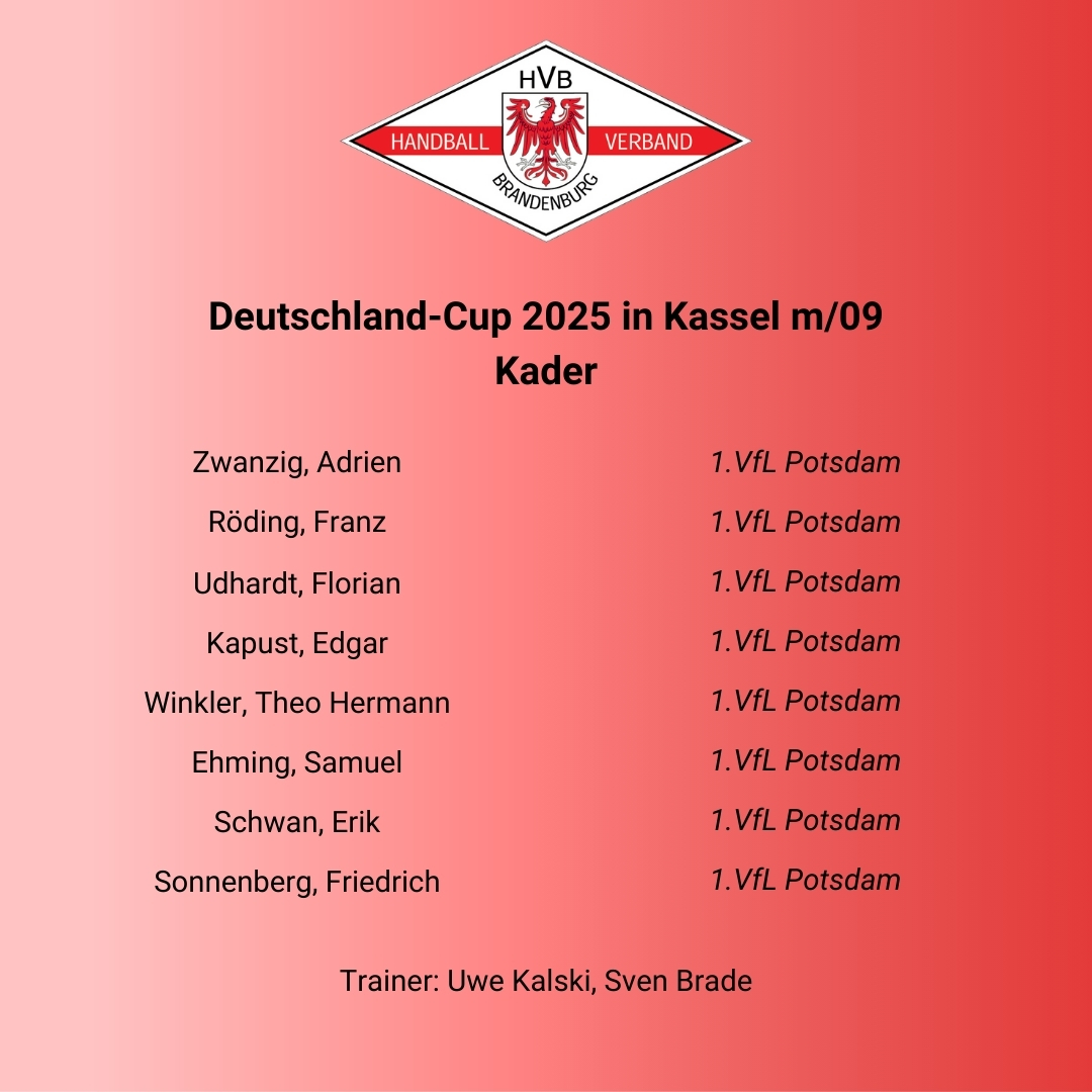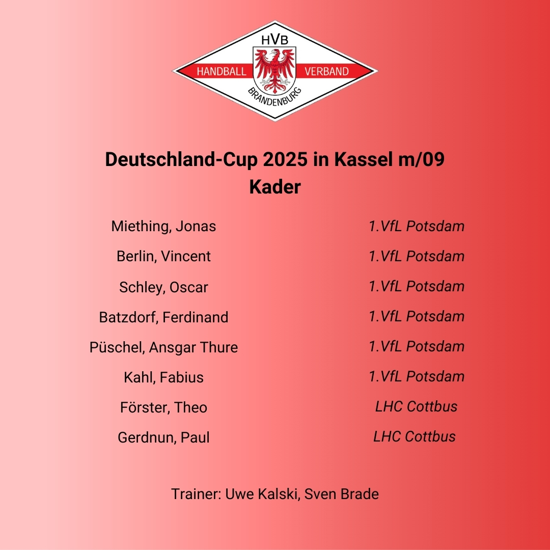 Vom 18. bis 21. Dezember 2025 nimmt das Team am Deutschland-Cup in Kassel teil. Dort treffen die besten Landesauswahlen Deutschlands aufeinander, um sich auf hohem sportlichem Niveau zu messen. Für die HVB-Auswahl bietet das Turnier eine hervorragende Gelegenheit, die Entwicklung der Spieler unter Beweis zu stellen und wertvolle Erfahrungen zu sammeln.