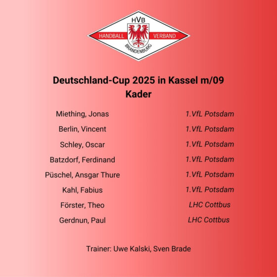 Die männliche Landesauswahl des Handball-Verbands Brandenburg der Jahrgänge 2009/2010 hat mit einer geschlossenen Mannschaftsleistung und großem Einsatz den Select-Cup gewonnen und sich damit bestens auf die kommenden Aufgaben vorbereitet.